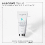 Symbiose Fondant Apaisant Essentiel da Kérastase é um condicionador anticaspa calmante, com ação desembaraçante, sem sulfato e sem silicone para couro cabeludo sensível, com tendência a caspa. Contém ácido salicílico para um couro cabeludo mais leve e bifidus para um couro cabeludo saudável. Uma fórmula hidratante para aliviar desconfortos e preservar a barreira do couro cabeludo. Cuidado intenso, porém, leve para o couro cabeludo e comprimento do cabelo. Reduz a sensibilidade do couro cabeludo desde a 1ª aplicação e aumenta a vitalidade do cabelo ao longo do tempo* O Fondant Apaisant Essentiel tem uma textura balsâmica branca bastante sensorial e luxuosa combinada com uma fragrância fina e luxuosa .