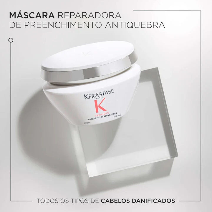 A Première Fille Reparateur é uma máscara anti-quebra profissional para todos os tipos de cabelos danificados que repara e reconstrói a força interior do cabelo superprocessado e protege contra novas quebras. O cabelo fica mais forte e mais bonito.