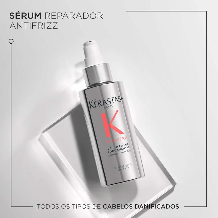 Première Sérum Filler Fondamental é um sérum de tratamento leave-in para a reparação interna de todos os tipos de cabelos danificados, deixando-os brilhantes e flexíveis.